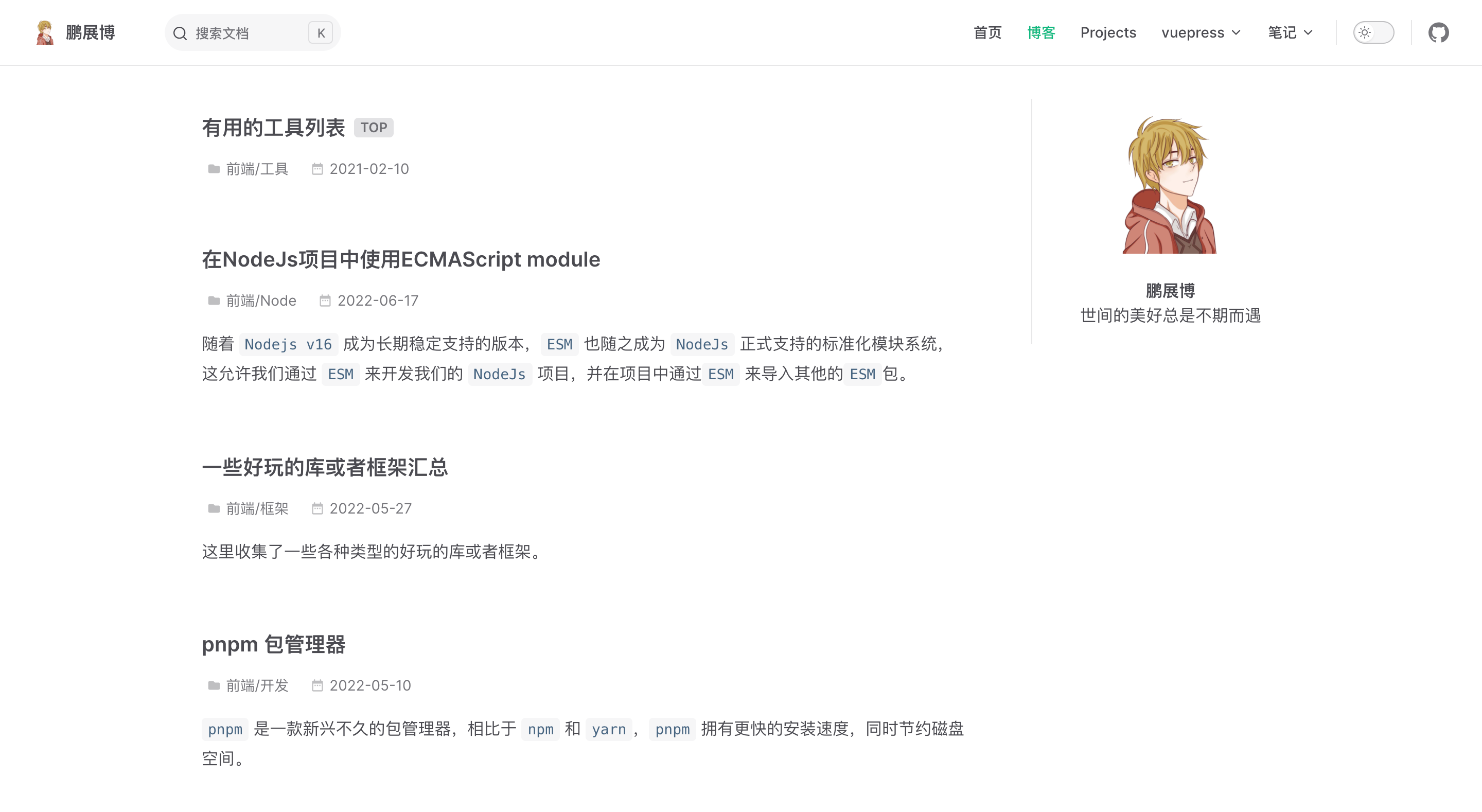 一个简约的 vuepress 主题。